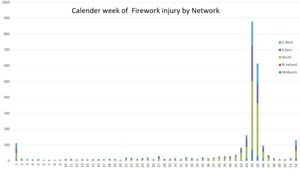 Older children, those in the 15 – 24-year age group, are most at risk from firework injuries and fires outside the home. The data shows….With Bonfire night fast approaching and organised firework displays being unable to take place due to Covid-19 restrictions, experts are concerned that injuries from these sources may increase this autumn/winter. Due to the many families who will take it upon themselves to organise their own firework displays at home.